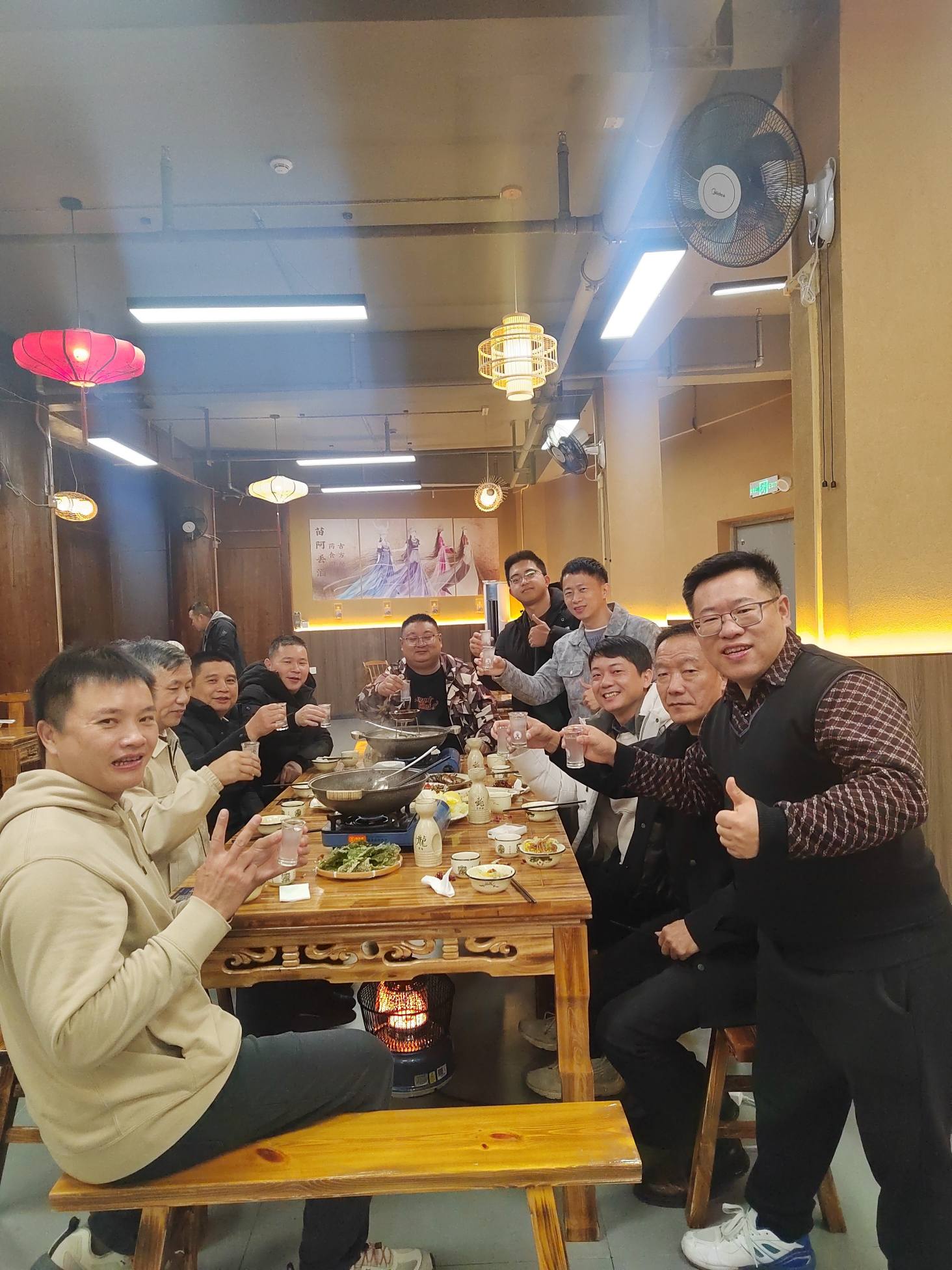 中午,我们沉浸于最具风情的“高山流水”长桌宴。酸汤鱼的酸辣、糯米酒的清甜,与苗家姑娘高亢的敬酒歌声、伙伴们的欢声笑语交织在一起,将气氛推向高潮。笑声与欢呼此起彼伏,几乎盖过芦笙的乐音。无数镜头举起,争相记录这流动的欢腾——那“高山流水”倾注的不仅是酒,更是苗家人火一样的热忱,是人与人之间瞬间消融隔阂的亲切,是一场所有人沉浸其中的文化狂欢。古老的村寨,仿佛也随之苏醒、沸腾。