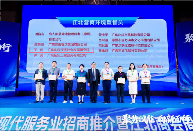 2026年3月25日下午,惠城区江北街道“聚势赋能 向新而行”现代服务业招商推介活动在富力酒店召开,江北街道以此次招商推介会为新起点,政企携手向新而行,共筑现代服务业高地。我公司员工王伟同志有幸被江北街道党工委正式聘任为营商环境监督员,这既是一份荣誉,更是一份沉甸甸的责任,未来公司将积极关注江北营商环境方面的问题或建议,一起为江北贡献力量。